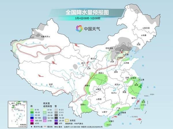 r中央方式台预测,今天,内蒙古东部、东北地区大部、华北北部、新疆北疆北部和伊犁河谷、川西高原西部等地部分地区有小雪或雨夹雪,寰宇证券,寰宇证券配资,香港寰宇证券公司内蒙古东北部、黑龙江西北部等地部分地区有中到大雪;江南南部、华南及四川中南部、云南东部、贵州大部、海南岛、台湾岛等地部分地区有小到中雨,广西东南部、广东中南部等地部分地区有大雨。